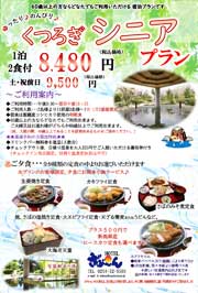 60歳以上の方ならどなたでもご利用出来ます。 ご夫婦又はお連れ様がどちらか60歳以上でご利用出来ます。 ※尚、入館の際、60歳以上であることを証明出来るものをご提示下さい。 ・ご夕食は9種類の定食の中よりお選びいただけます。