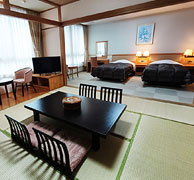 | 和室と洋室が一緒になった、ゆったりとくつろげるお部屋です。和室・洋室が仕切れるのでご家族連れの方や大人数のグループにおすすめです。 |